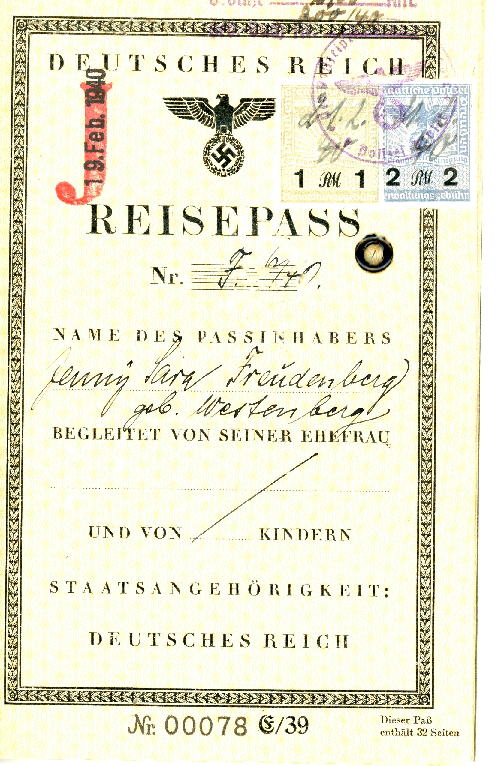 The Following are from my great great grandmother’s (on my father’s maternal side) Reisepass. Notice the stamped “J”. It is in impeccable condition. Still trying to determine the lineage on that side of the family.
